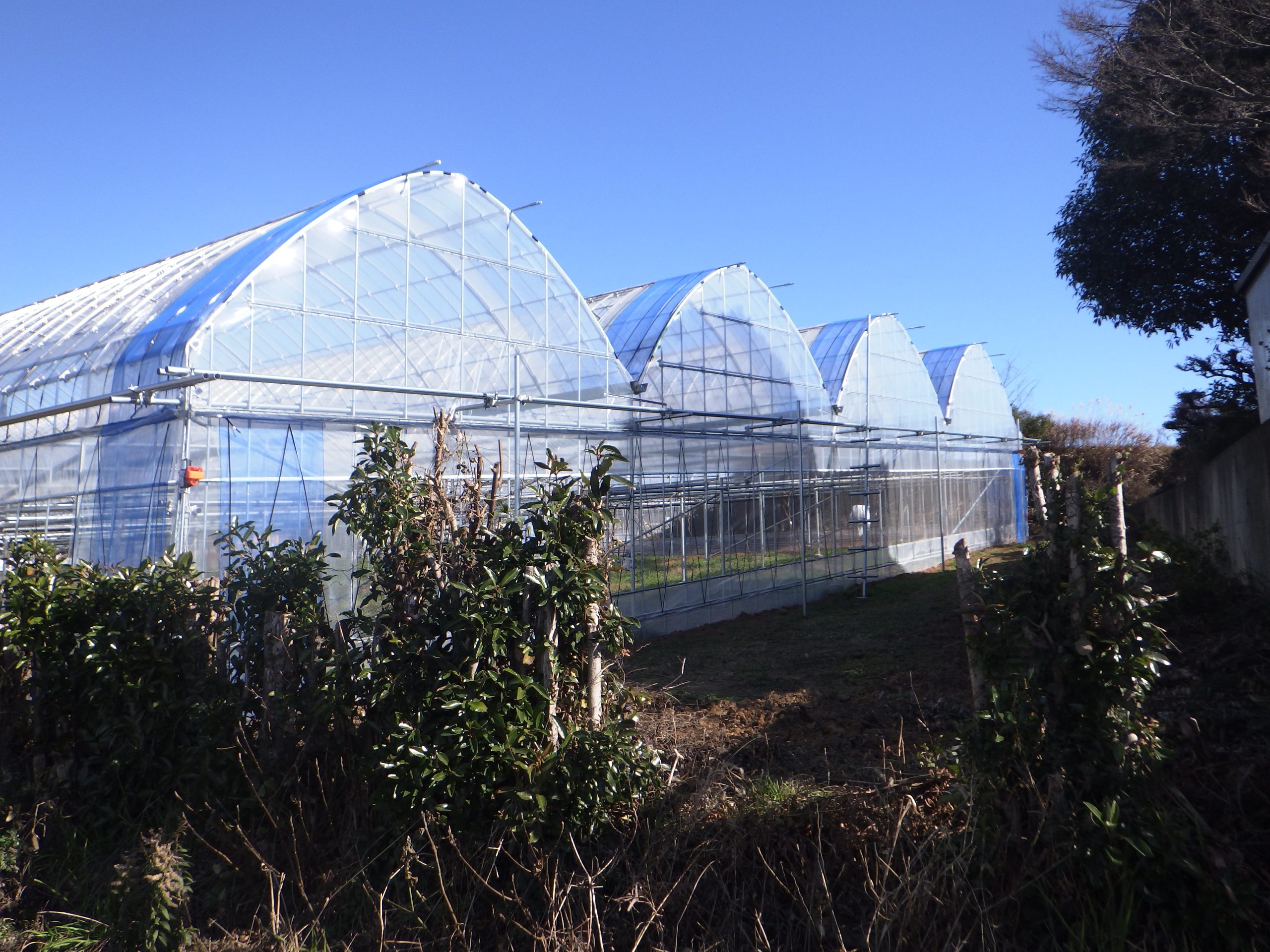 勾配のきつい傾斜地や曲線土地など様々な土地形状に合わせたビニールハウス設計が可能です。